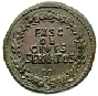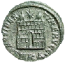 A shortage of aes in Britain in the 350s led to the same local remedy as had produced the third century barbarous radiates, and huge numbers of copies of the FEL TEMP REPARATIO coins, some very small, were produced in Britain and Gaul. An interesting development during this rash of imitations was the overstriking of earlier coin types by the FEL TEMP forgers, perhaps because of an official recoinage of earlier types. This overstriking seems to be peculiar to Britain.