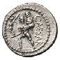 Obverse & Reverse of a silver denarius issued for Julius Caesar from an unknown mint believed to have been in Africa
